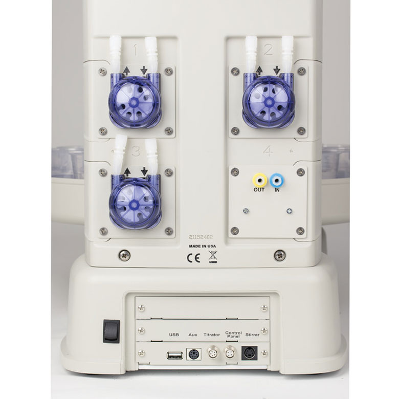 1 aspirasyon tüpü, 5 çok amaçlı yuva (titrant/reaktif tüpleri),